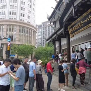 相比酱鸭,云南路上小金陵的盐水鸭,鸭皮白嫩,肥而不腻,香鲜味美,具有香、酥、嫩的特点,同样吸引了不少食客。早上六、七点钟来排个长队,要想买到起码得排一、两个小时。一位市民说:“这家盐水鸭是百年老店了,从小吃到现在,感觉蛮好吃的。今天是中秋节,家里葱油芋艿,再配盐水鸭 ,要有过节的仪式感。”