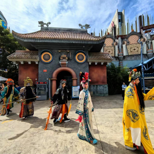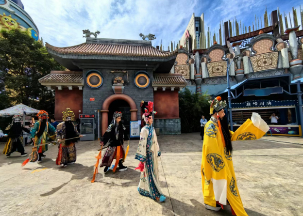假期第一天,“中国范·国潮戏曲节”在乐多港卡乐星球开幕,活动包含戏曲名段演出、戏曲巡游、戏曲跨界混搭、国潮戏曲音乐秀、非遗火花演绎、丝路非遗市集等6大块内容。