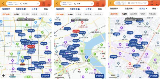 除了北京、上海等传统客流集中地,在一些旅游淡旺季人流差距明显的区域,或者近几年新兴起的网红景区里,酒店价格也“水涨船高”。