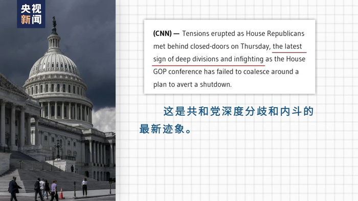 报道指出,共和党强硬派不愿通过任何形式的短期拨款法案来维持政府运转,导致会议未能就避免政府关门的计划达成一致,这是共和党深度分歧和内斗的最新迹象。