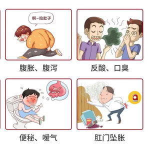 恶心、呕吐、腹痛、腹泻、噎食嗳酸、