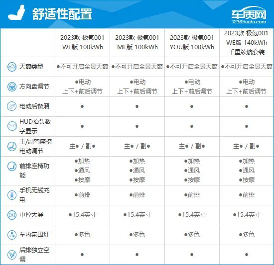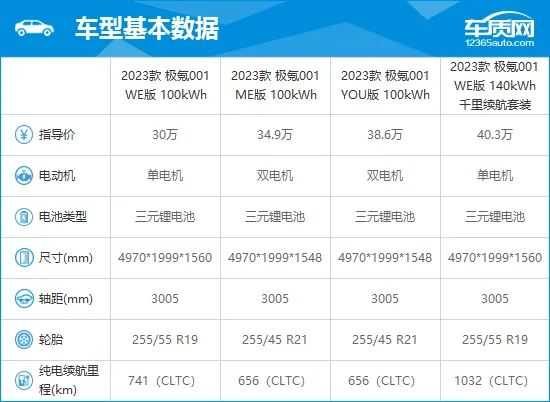 2023款极氪001提供单电机和双电机两个配置可选,不仅动力参数达到同级别主流水平,而且续航里程也提供多个版本选择,整体表现出色。其中,入门版车型的配置水平并不低,相较中高配车型差异不大。无论舒适性、科技性还是安全性配置,都能满足日常使用所需。
