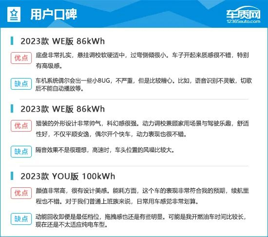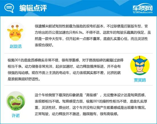 在用户口碑中,多数车主都对2023款极氪001的外观设计以及操控性表示满意。作为一款中大型车,极氪001的驾驶质感相当出色,丝毫不显蠢笨。动力方面,无论是双电机还是单电机版本,整体调校都很平顺,日常驾驶平顺安逸,对于舒适性的照顾比较妥帖。