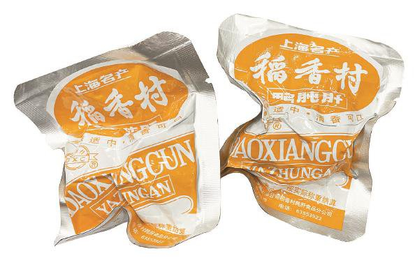 “稻香村”始创于光绪十八年(1892年),是上海市著名商标。“稻香村”三字,典出曹雪芹《红楼梦》,旧时茶食店老板为讨口彩,都喜用“稻香村”做招牌字号。上海稻香村便是其中鸭肫肝做得最为出色、出名的,专营鸭肫肝等禽肉制品,素有“肫肝大王”美誉,货鲜味纯,百吃不厌,热销海内外,也是中华老字号知名品牌。多年来,坚守着“保持特色,保证质量,保证卫生,保持信誉”的四保经营之道。出品的鸭肫肝以“高、精、专”的产品特色闻名于世。将传统卤制工艺和现代化包装工艺相结合,开创了休闲食品软包装生产的先河。