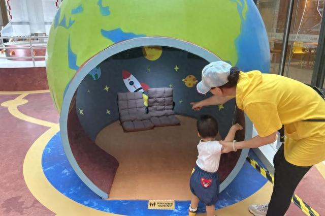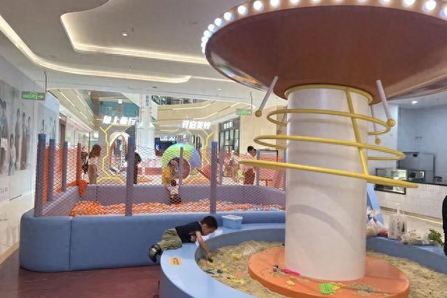 现场,记者在1楼中庭处看到了商场布置的“儿童主题乐园”,里面有海洋球池、童趣滑梯和幻想沙池。在这里,小朋友们可以在海洋球池里肆意翻滚,互相嬉戏打闹,同时家长们也有了片刻的休憩时光。