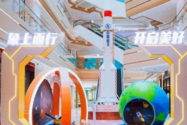 祝融号火星车沉浸式探索、行星书屋徜徉知识海洋、神州十五号运载火箭1:8等比模型……红象汇打造的“沉浸式航天美陈展”在开业当天吸引了不少亲子家庭前来体验这个寓教于乐的亲子主题互动快闪活动。