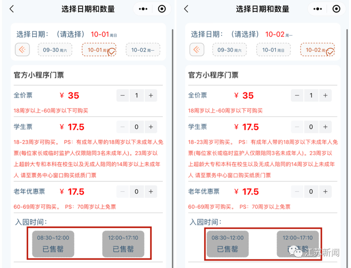 10月1日和10月2日的门票