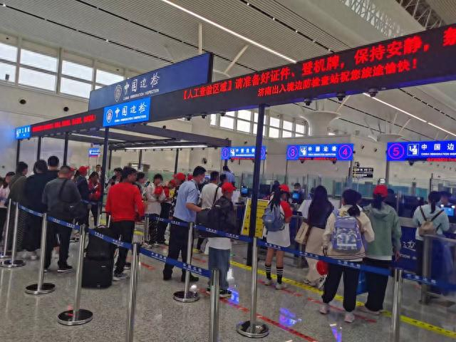 济南:出入境迎高峰 边检全警保畅通