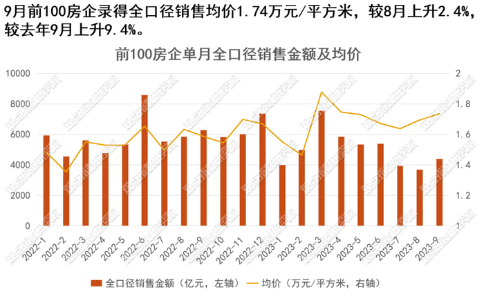 9月100家房企单月销售2849亿元,环比提升12.6%