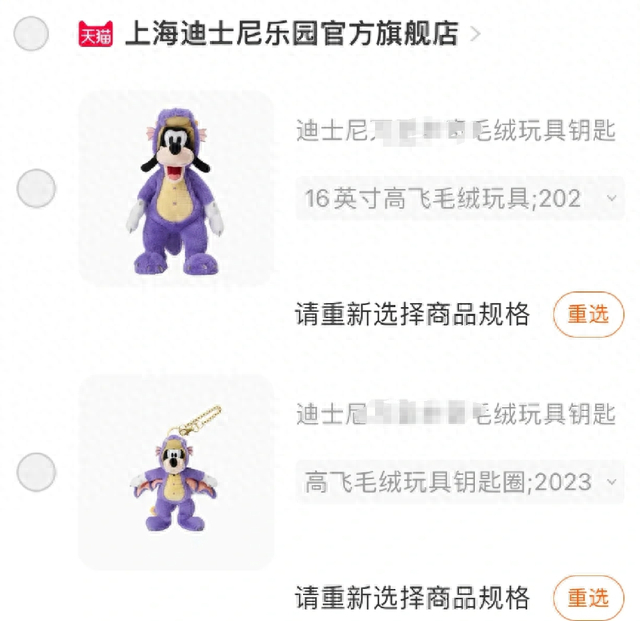 有媒体采访到一个网友,他9月26日去上海迪士尼乐园,希望能购买“紫龙高飞”商品,中午就已断货。这名网友最终在迪士尼地铁站附近从他人手中以850元购买了“紫龙高飞”系列钥匙圈和毛绒玩具,两件商品原价合计318元。