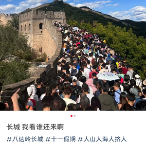 全国多地景区内也是人山人海,甚至出现“堵人”现象,排队长龙一眼望不到头。旅客发布的视频显示,上海外滩、北京长城、西安大唐不夜城等景区都挤满了人。一位西安旅客表示,队伍根本排不完!中秋还只是预热,国庆才是高峰。有旅客调侃“一时分不清是来看景还是来看人的”。
