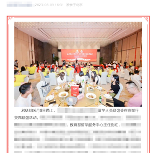 上述消息中介绍,2023年6月8日晚上,北京晋江企业商会与晋江留学人员联谊会在京举行交流联谊活动,晋江市委常委、统战部部长黄天凯,商务部原司长、顶新国际集团公益基金会副理事长陈志团,教育部留学服务中心主任刘红等100多人出席了活动。