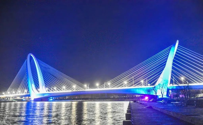 新首钢大桥坐落于北京永定河之上,是连接首都西部的重要交通纽带,也是我国桥梁中最宽的一座钢桥梁。它见证了北京2022年冬奥会首钢滑雪大跳台双金的诞生,也在时刻凝视着这座百年钢厂日新月异的变迁。