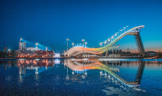 首钢滑雪大跳台是北京中心城区唯一的雪上比赛场馆,也是世界上第一座永久性的城市滑雪大跳台。它的设计灵感来源于中国敦煌壁画中的“飞天”,“飞天”与滑雪大跳台项目的英文“Big Air”一词,都有向空中腾跃、飞翔的意思,由此得名“雪飞天”。
