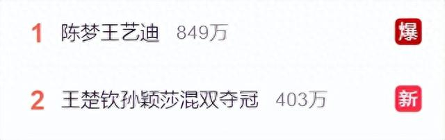 不过也有好消息,9月30日晚,杭州第19届亚运会乒乓球混合双打决赛,中国组合王楚钦/孙颖莎击败队友夺得金牌。