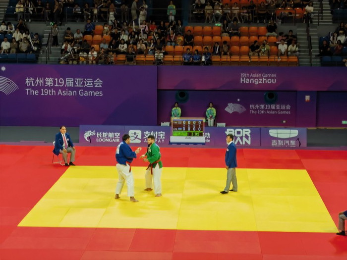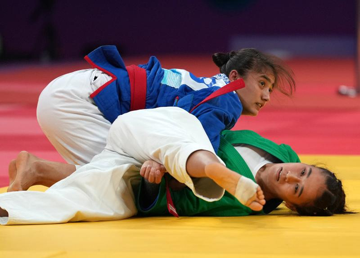 开赛首日,乌兹别克斯坦队员在克柔术项目展现出强大实力,阿通、克里拉和穆赫辛分别在各自重量级成功捍卫了自己作为世界冠军的荣誉。在男子+90公斤级决赛中,来自土库曼斯坦的选手特杰诺夫输给了四次获得克柔术世界冠军、2018年雅加达亚运会卫冕冠军穆赫辛。落败的特杰诺夫在赛后并没有太多沮丧的神色,“克柔术这个项目,他们所有的选手实力都很强。这是乌兹别克斯坦的传统优势项目,所以我并不感到惊奇。”