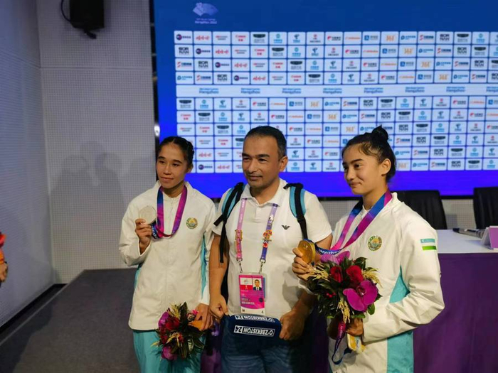 乌兹别克斯坦在克柔术项目中占据主导地位,在杭州他们将力争包揽七枚金牌。在雅加达亚运会上,乌兹别克斯坦选手拿到了6枚金牌,差点实现大包大揽。在混合区,笔者根本无法完成采访,因为参赛选手大多说俄语、韩语或泰语,基本不会英语。