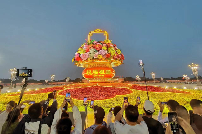 天安门广场的“祝福祖国”巨型花篮,已成为国庆的固定搭配。