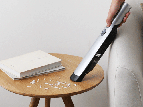 这种无线设计的吸尘器,别看它身材小巧,吸力却超级大,甚至可以吸在手上。