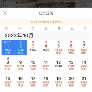 杭州富邦丽佳国际大酒店10月1日入住的最低价格也不满500元/晚,为447元/晚;10月2日后的最低入住价格均为430元/晚左右。