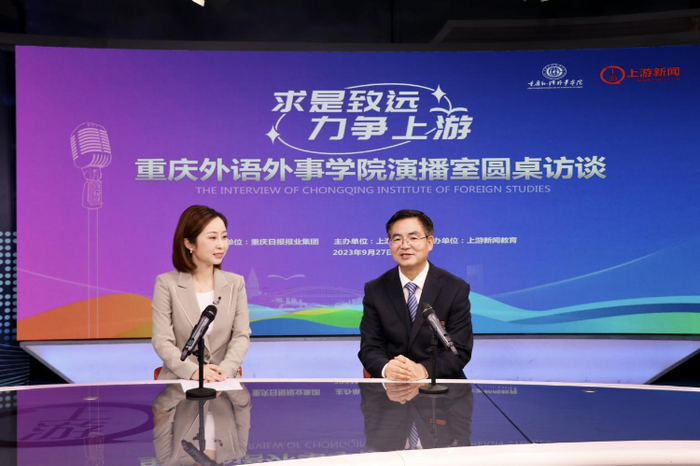 “外语既是学校的优势,也是学校的特色。因此,学校始终将推进国际化视为核心发展战略,并以开放的姿态与国际教育对接。”9月27日,重庆外语外事学院&上游新闻战略合作座谈会暨演播室圆桌访谈在重报集团新闻传媒大厦举行。在演播厅访谈中,重庆外语外事学院校长李克勇从学校概况、办学理念、应用型人才培养模式等方面,介绍学校的办学特色与经验,分享学校致力扮靓重庆高等教育的“国际范”的实践路径。