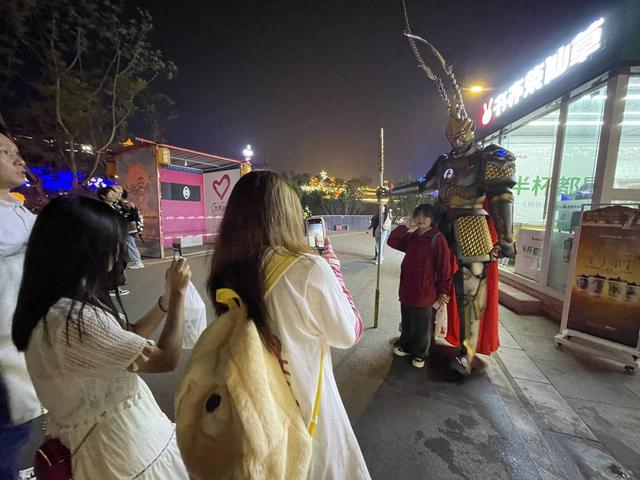 在万达广场,每天也有不少来打卡的外地游客。节日期间,万达广场开展了秋季惠民车展、科迪城汇演、国风游园会、嫦娥奔月秀、国风舞台秀等活动,夜间消费增长明显。