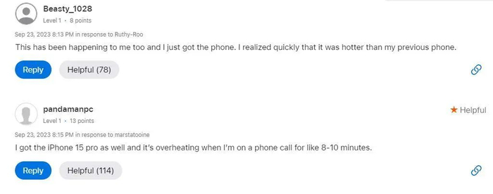 另外,根据苹果社区上部分国外网友的反映,在进行打电话、拍照、充电等操作时出现了机身温度过高的情形,甚至有多个网友称,在剩余内存空间足够大的情况下,即使不用手机也会发热。
