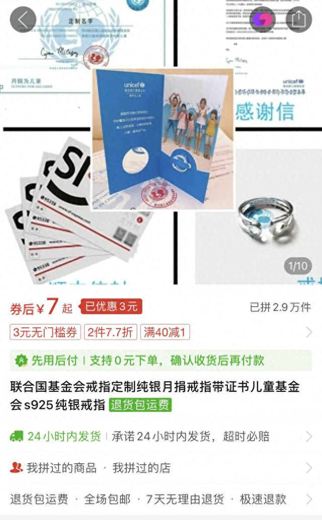 只要7元就能买到“联合国儿童基金会戒指”?记者调查“李鬼”商铺最多已卖2万多个了