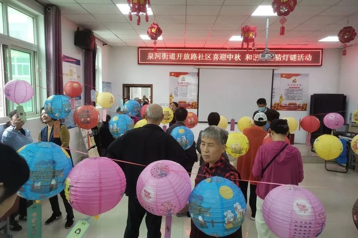 开放路社区组织居民开展“我们的节日·中秋——喜迎中秋 和谐邻里”猜灯谜活动。