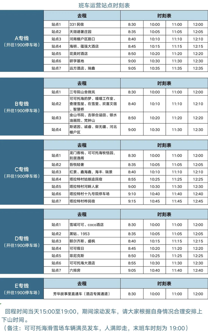 请雪友们根据摆渡车时间表,调整好自己的出行方案。本时间表有效期:2023年10月1日-10月7日,后期会根据具体情况,随时调整摆渡车时间。