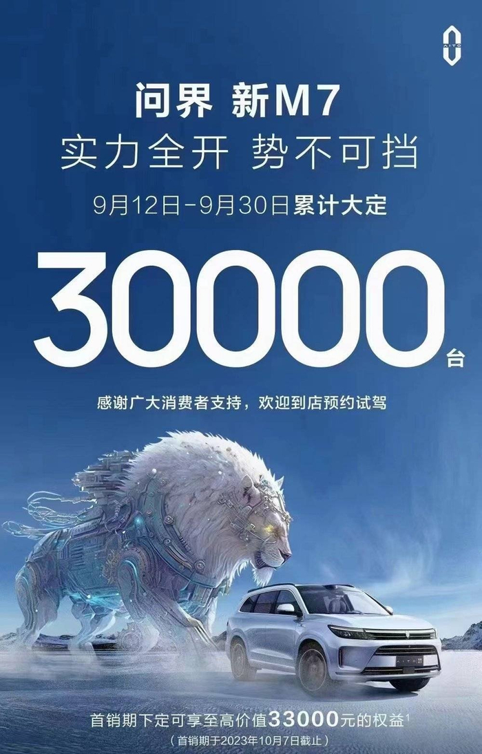 这不是华为手机限量发售的数额,也不是华为新款智能腕表的售价,而是问界新M7上市后18天的累计大定数量。