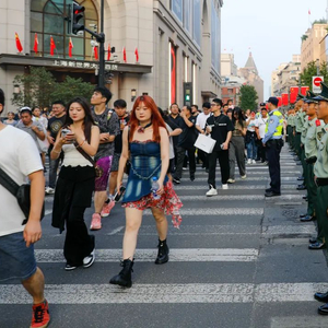 国庆假期,上海南京路步行街人潮如织,武警官兵们组成的“拉链式人墙”成为一道橄榄色风景线。在交叉路口,当红绿灯闪烁,跟随着指挥哨声,武警队列规律地“开关闭合”,阻隔车流与人群。