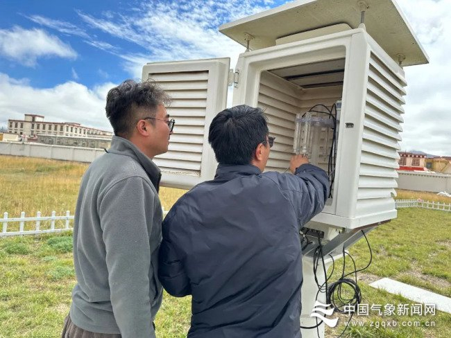 10月1日,四川省甘孜州石渠县发生4.4级地震。地震发生后,石渠县国家气象观测站的气象工作者进行设备维护,全力做好气象保障服务。图/文 赵敏