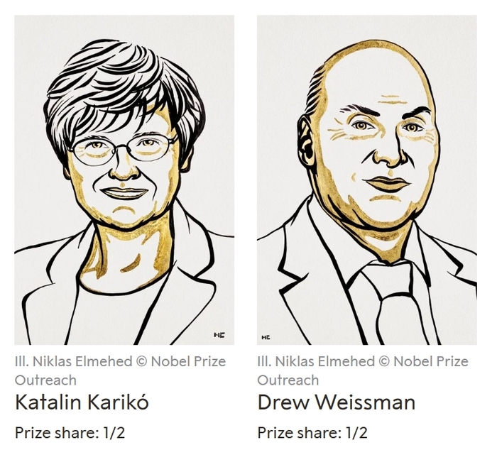 2023年诺贝尔生理学或医学奖揭晓!获奖人是他们,研究成果与新冠疫苗相关,将获得超700万元奖金