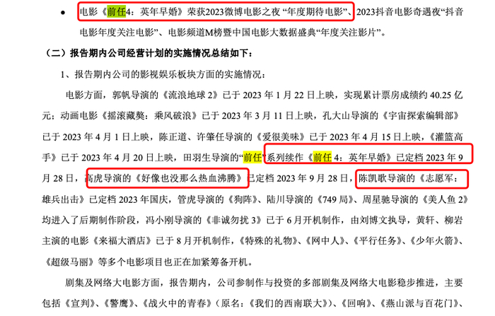 除了光线传媒外, 华谊兄弟参与了《前任4》《志愿军:雄兵出击》《好像也没那么热血沸腾》三部影片的投资。尤其是《前任4》,华谊兄弟此前曾多次在公告中提及该片,并对该片票房寄予厚望。