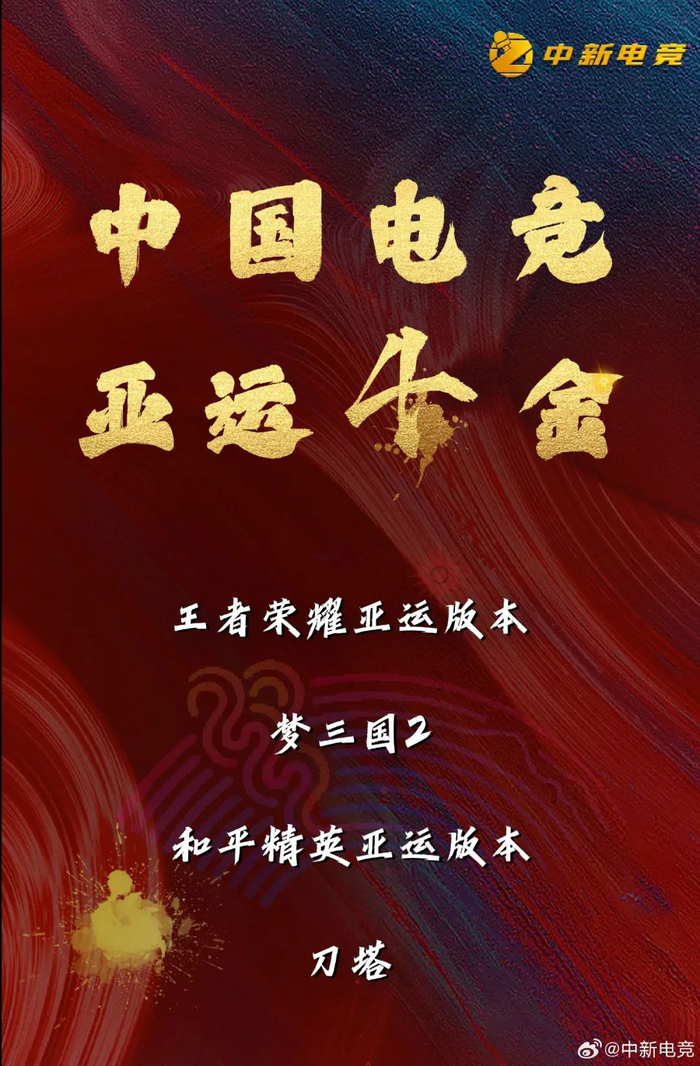 中国队在王者荣耀亚运版本、梦三国2、和平精英亚运版本和刀塔项目中获得冠军,在英雄联盟项目中获得季军,共收获4金1铜。