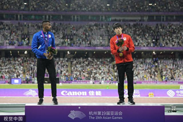 10月2日晚,日本选手高山峻野与科威特选手雅各卜·尤哈以13秒41的成绩,一起站上冠军领奖台。20岁的中国小将徐卓一以13秒50摘得铜牌,朱胜龙跑出13秒73,最终排名第六。