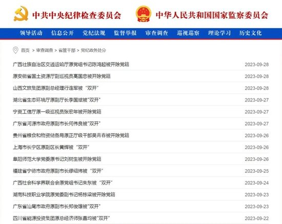 海关总署口岸监管司原副司长窦树龙被开除党籍和公职;广西壮族自治区交通运输厅原党组书记陈鸿起被开除党籍;上海市长宁区原副区长、市公安局长宁分局原党委书记、局长黄辉被开除党籍和公职,等等。