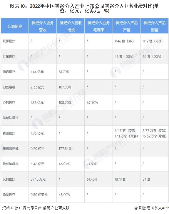 神经介入产业上市公司神经介入业务业绩对比