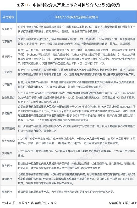神经介入产业上市公司业务规划对比