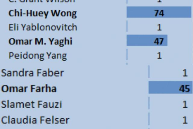 其中,排名第一的翁启惠教授生于中国台湾嘉义,美籍华裔化学家,美国国家科学院院士,长期致力于生物有机化学及醣分子科学领域研究,世界上首次成功以酵素技术大量合成复杂多醣物(多醣及醣胜肽)。曾在2014年获得沃尔夫化学奖,2015年获英国皇家化学会罗宾逊奖,2022年获威尔许化学奖,上述奖项都被视为诺贝尔奖的前哨站,外界也看好翁启惠未来有机会获得诺贝尔化学奖。不过由于去年的诺贝尔奖颁发给了同样从事类似研究的卡罗琳,因此可能今年会换一个领域。