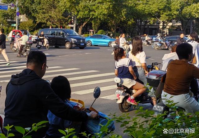 一位母亲带着女儿,小女孩倒坐在后座上,用手托着下巴靠在储物箱上。三个人分骑两辆电动车,并排而行,边骑边投入地聊着天儿……记者看到,路上的普通骑行者绝大部分都没有佩戴头盔,所见佩戴了头盔的骑行者,以外卖配送员为主。
