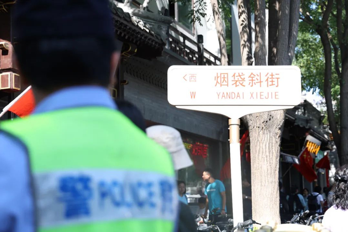 西城分局民警在什刹海景区开展动态巡逻,针对人流高峰进行分流、错峰疏导,对烟袋斜街、银锭桥等热门点位增设警力值守。