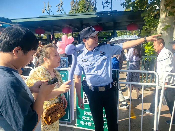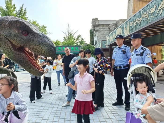 为应对假期人流高峰,大兴分局加强北京野生动物园周边的警力部署,民警时刻在岗在位,守护人们轻松愉悦的假日时光。