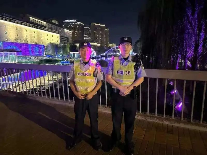 朝阳分局民警在亮马河沿岸集市、商铺进行巡逻值守,守护群众眼中灿烂的“休闲天堂”。