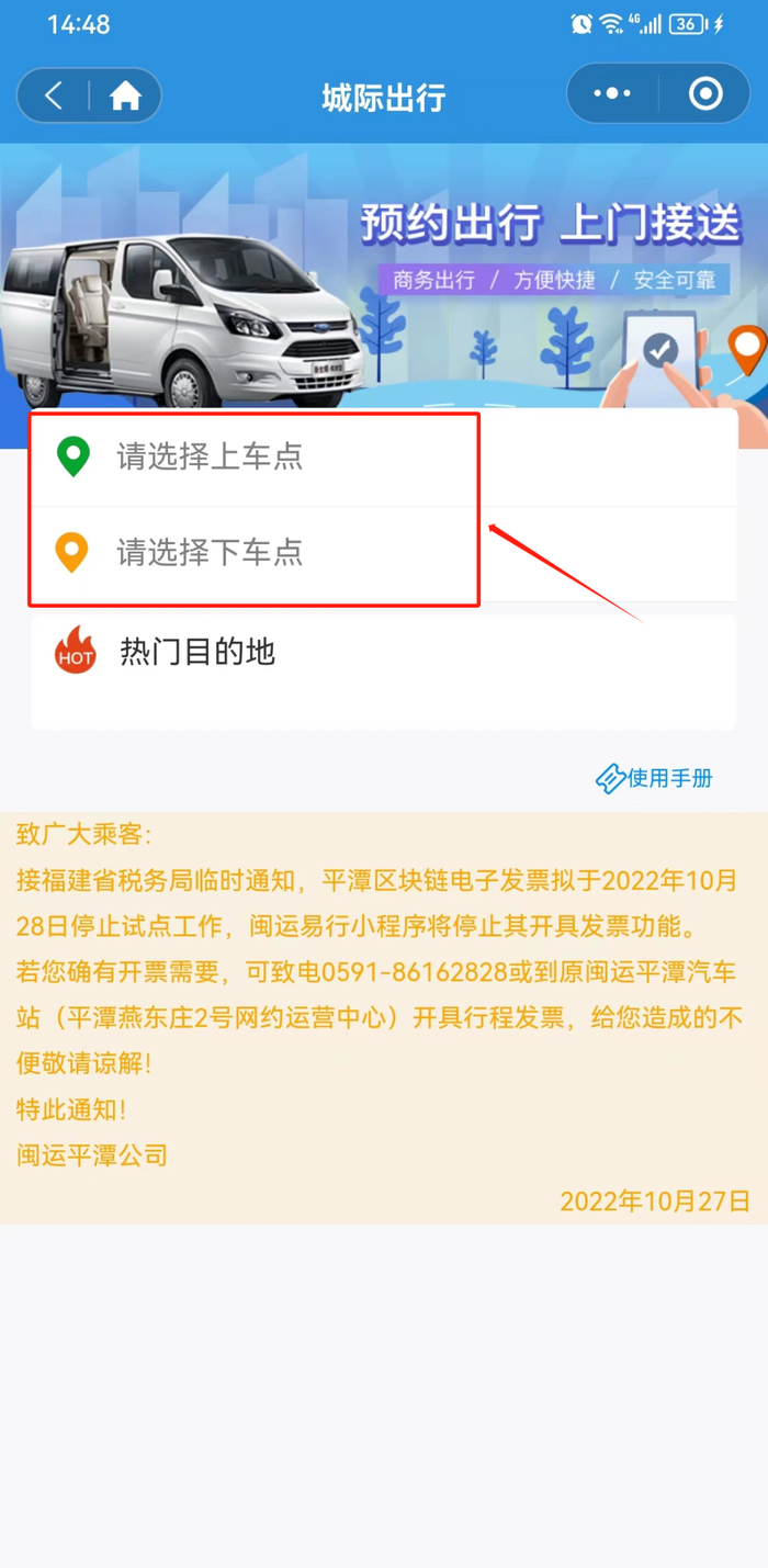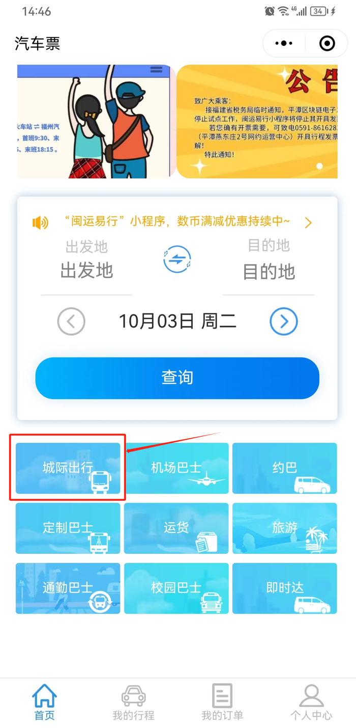 此外,定制出行可关注“闽运易行”微信公众号,点击“城际出行”预约乘车,选择上下车地点,选择出发县市、出发地、目的地,选择出发日期、拼车或包车,选择出发时间以及乘车人,确定行程后,即可预订。