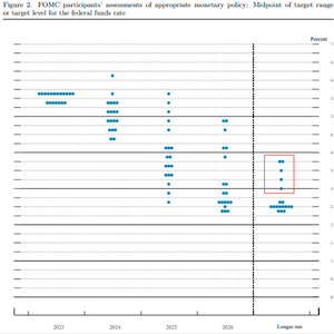 同一时间公布的“点阵图”显示,大多数央行官员们认为今年还有一次25个基点的加息,并且对明年降息幅度的预测仅约50个基点。梅斯特透露,官员们认为“利率可能已接近峰值”,但需要在一段时间内保持在较高水平。