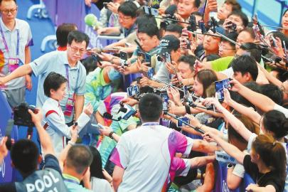 本报杭州10月3日电(四川日报全媒体记者 郑志浩)10月3日,杭州奥体中心游泳馆,在女子跳水10米台的中国姐妹花对决中,全红婵以不到3分的微弱优势夺得冠军,队友陈芋汐获得银牌。这对姐妹花是当前女子10米台的“断层式”领跑者。从东京奥运会到2023年游泳世锦赛,只要全红婵和陈芋汐同时参赛,女子单人10米台的冠亚军就不会旁落。从以往竞赛表现来看,全红婵在技术难度的追求上更加极致,陈芋汐在技术动作上的稳定性和灵活性更胜一筹。从此前两人的交战来看,陈芋汐战胜全红婵次数更多。上午预赛,全红婵以总分418.15分排名第一,与总分406.45分的陈芋汐携手晋级决赛。这也是两人在亚运会单人项目上的首秀。决赛从第一轮开始,两人争相上演“水花消失术”。第一跳,全红婵以85.5分领先陈芋汐6分。比赛的高潮出现在第二轮。在波澜不惊的第一轮过后,全红婵第二跳407C的动作表现十分完美,从空中姿态到入水,完美展示了何为“水花消失术”,现场7名裁判一致打出了10分的满分。凭借这一跳96分的卓越表现,全红婵在第二轮过后领先陈芋汐22分。第三跳开始,陈芋汐状态回暖,拿到了95.7分,全红婵难度系数稍低,拿到86.4分,两人的分差缩小到12.7分。第四轮,陈芋汐继续保持上佳表现,全红婵发挥失常仅得到75.9分。陈芋汐总成绩首次反超,领先5.45分。最后的一跳决定金牌归属,陈芋汐先跳出86.4分,拿到总成绩435.65分。全红婵顶住压力,最后一跳94.4分,总分438.2分,实现反超夺冠。分是最好对手,合是最强组合——这是体育迷对两人实力的由衷赞美。三天前,杭州亚运会跳水项目的首枚金牌也在这里产生。在女子双人10米跳台比赛中,全红婵和陈芋汐的双人组合以375.30分的成绩,轻松摘得了这枚金牌,领先亚军组合超过85分,为中国跳水队包揽全部金牌的目标开了个好头。声音“惜字如金”全小妹 难题都交“姐姐”答□四川日报全媒体记者 郑志浩发自杭州女子单人10米台夺冠后,拥有超高人气的全红婵仍是“惜字如金”的风格,无论是赛后混合采访还是新闻发布会,她的回答总是简短而率真。以往发布会上,全红婵爱把难缠的问题,抛给年长她两岁的姐姐陈芋汐来回答,而后迅速溜走,“跑得比兔子都快”。这次亚运单人项目夺冠,虽已习惯记者的“长枪短炮”,坐居“C位”的全红婵仍显羞涩。“你习惯让陈芋汐帮你回答问题,以后会不会学习一下如何应对媒体采访?”当晚的新闻发布会上,这可能是“最犀利”的问题。稍微思考了一下,全红婵给出了“全氏”幽默的回答,“我觉得乐姐(陈芋汐)更会讲一点,我讲出来会很搞笑,以后要学习(如何应对媒体)。”虽被视为顶流,但全小妹一如往常的谦逊。“我想对粉丝说,感谢大家来看我们的比赛!”全红婵口中的“我们”,指的是她和陈芋汐这对组合。她将自己的高人气归因于这个近年来战无不胜的“金牌组合”,而不是单单她自己个人的优异表现。谈及自己面临的困难,她也坦率说身体发育是自己要克服的最大难关。“和东京奥运会相比,身高长了,体重也有变化,动作的完成没有那么轻松了。”东京奥运会后,全红婵一度因为身体的发育导致表现起伏不定,近年来也多次败给队友陈芋汐。这次她在两人的直接交锋中胜出,也说明她对自己身体的掌控力在提升。面对即将到来的巴黎奥运会,她表示要先做好自己的训练,希望能在赛场上继续为国争光。