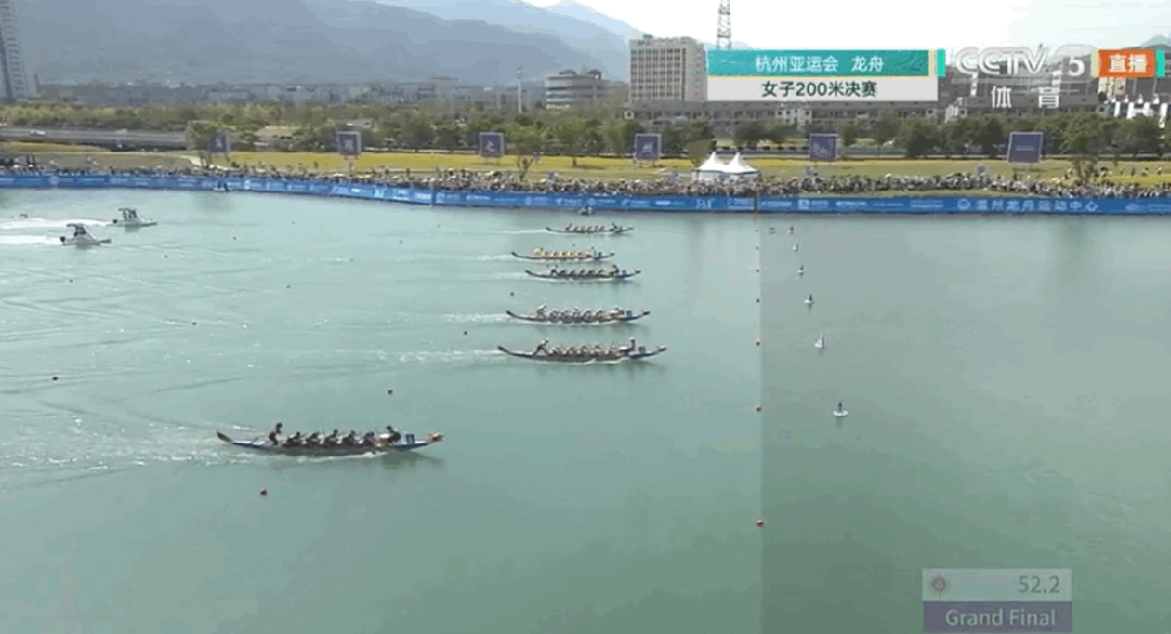 10月划龙舟,是延迟过端午吗?这里是杭州亚运会现场!今天是龙舟项目比赛的第一个决赛日,中国队包揽男子、女子龙舟200米金牌,祝贺!