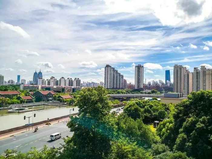 在苏州河长宁段,有着一条通往“绿野仙踪”的宝藏路线,可偶遇镶嵌在其周边的“荟水天中”,位于长宁路北侧、贝多芬广场与中山公园地铁站4号口之间的三角地带的“乐享花园”,以及集社区客厅、运动驿站和艺术空间为一体的镜花园等绿地,享受满眼苍翠带来的舒适与惬意。